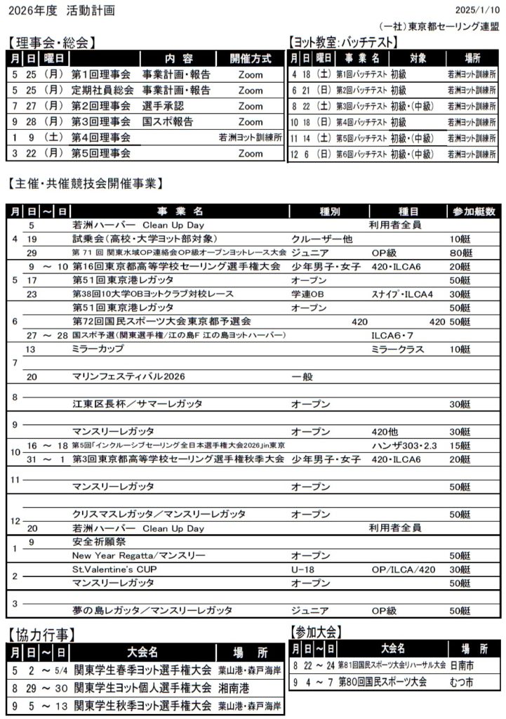 一般社団法人 東京都セーリング連盟一般社団法人 東京都セーリング連盟一般社団法人 東京都セーリング連盟一般社団法人 東京都セーリング連盟一般社団法人 東京都セーリング連盟 JSAF会員登録 2026年度活動計画 2025年度活動計画